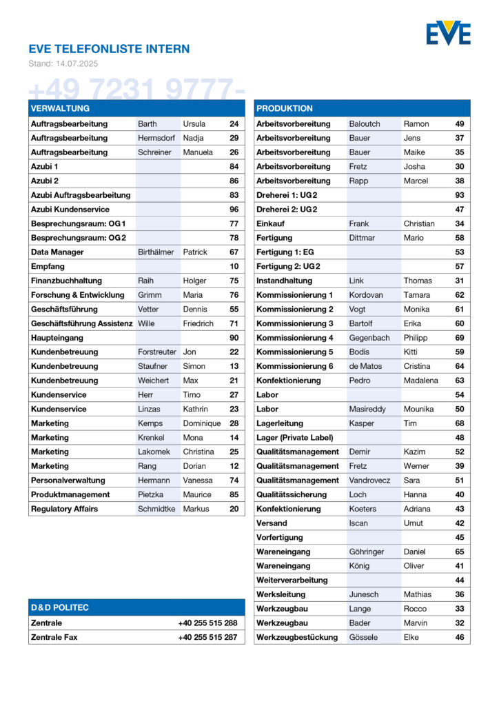 Ab sofort finden Sie hier alle wichtigen Informationen rund um EVE, übersichtlich an einem Ort. Ob Neuigkeiten, Veranstaltungen oder interne Änderungen, das Intranet ist künftig der zentrale Kommunikationskanal für alles, was in unserem Unternehmen passiert. Was Sie erwartet: Mit dem neuen Intranet möchten wir die interne Kommunikation stärken. Es soll Ihnen helfen, schnell und unkompliziert […]