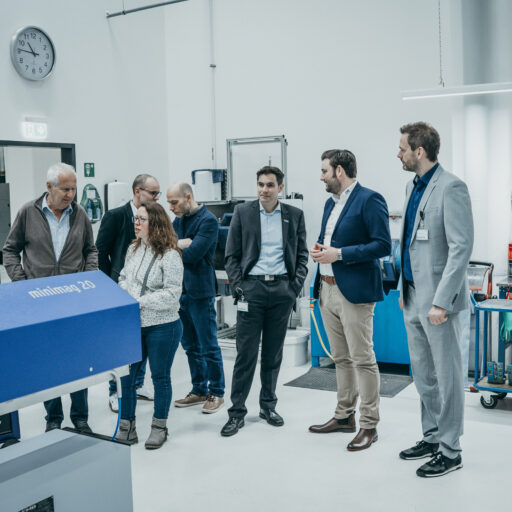 Besuch von Bürgermeister Steffen Bochinger, Wirtschaftsförderer Jochen Enke, Landrat Bastian Rosenau, Herbert Wackenhut (Hochform Cluster) und Karoline Schmidt (Jobcenter Enzkreis)